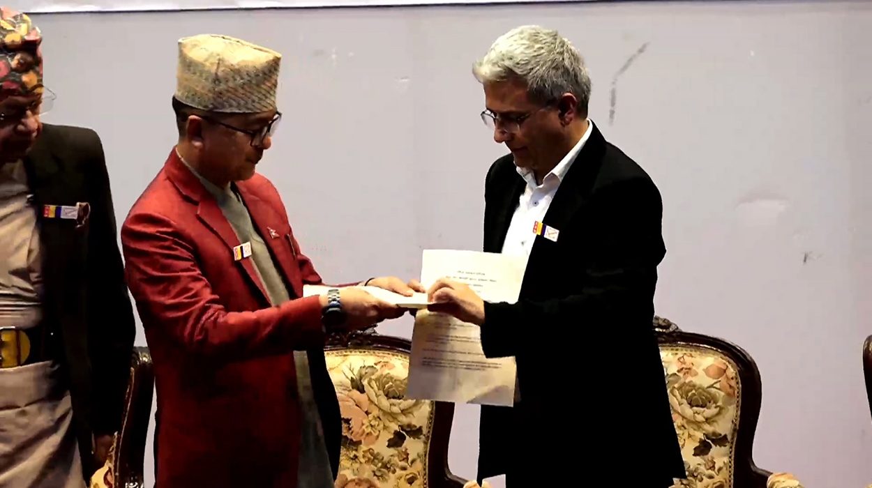 ओलीले रवीन्द्र मिश्रलाई दिए एक मुठी सिक्का उपहार